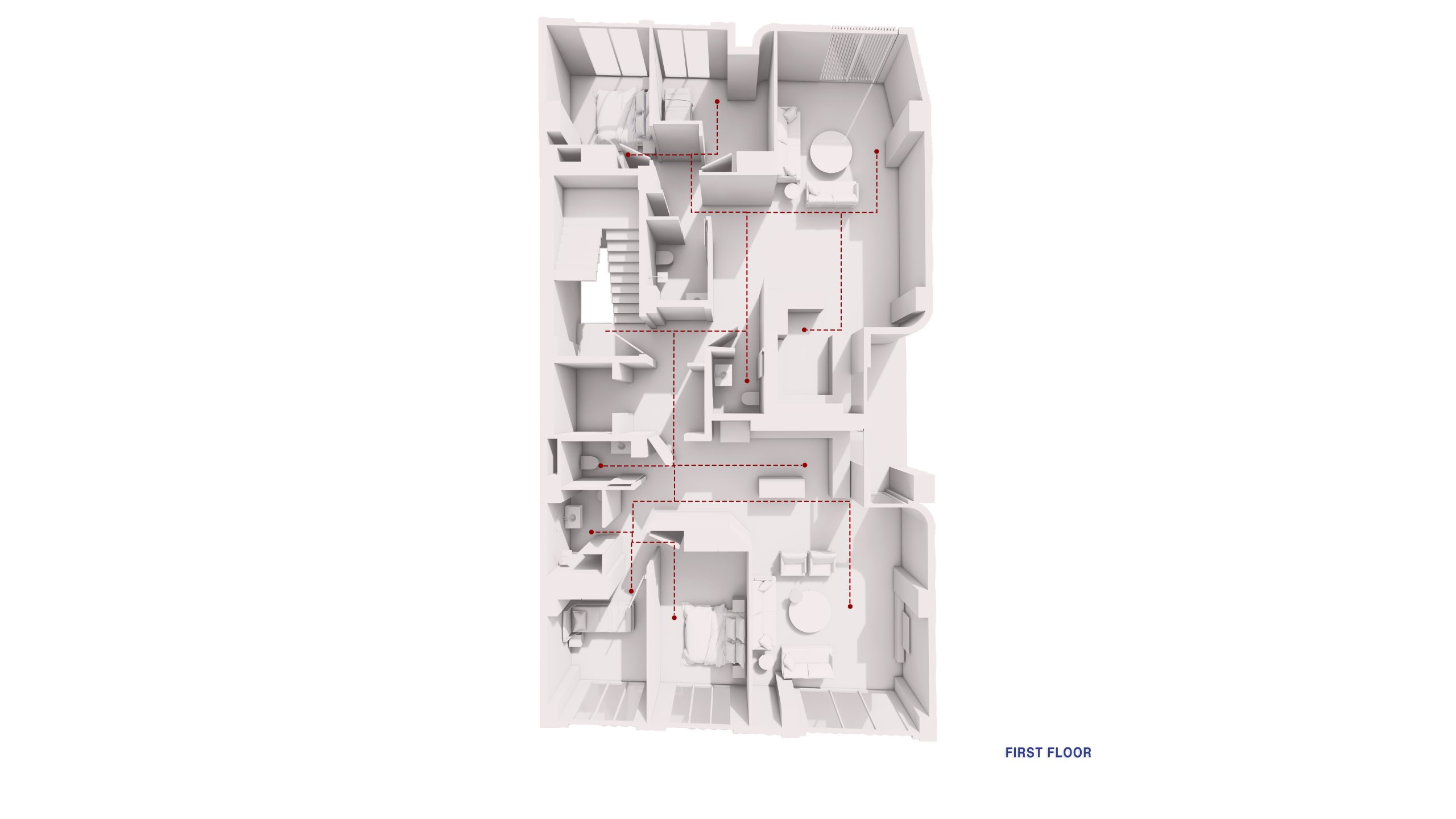 The project’s innovation lies in the connection established between a portion of the roof and the upper residential floor. A staircase within the upper floor’s living space provides private access to a section of the roof, creating an attractive addition that strengthens residents’ connection with the sky and surrounding landscapes, offering a semi-open space for recreation and relaxation.